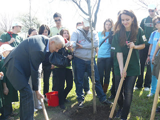Era sa uit, dl. Oprescu a plantat si el copaci cu noi