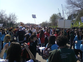 Pe la 12 am ajuns in parcul Tineretului, intrarea Sincai, unde ne-am oprit sa facem ”Freeze Momentul” – adica am ”inghetat” cu totii timp de 2 minute pentru a atrage atentia si mai mult asupra mesajelor pe care le-am avut atat pe pancarte, cat si pe tricouri.