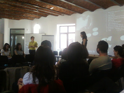 Am fost intampinati de Ramona Patrascanu din partea IAA Young Professionals si Futurelab, care ne-a prezentat cadrul si speakerii zilei. Totodata, ea a lansat concursul de intrebari prin SMS, cu 10 iPod-uri ca premii.